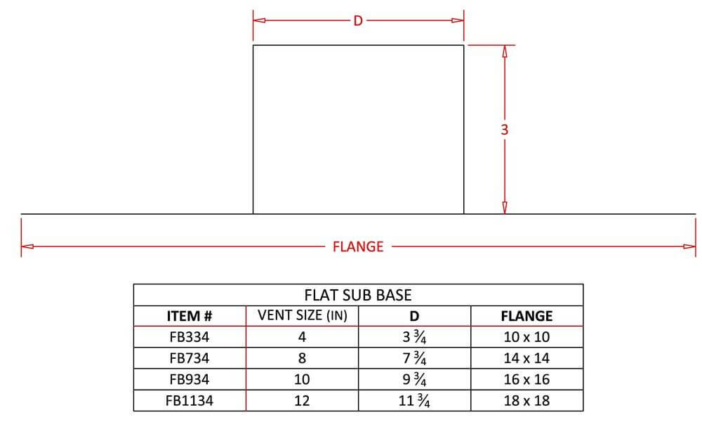 The FAMCO FB34 Flat Sub Base 3 inch Tall - No Crimp is designed to give a roof vent three inches of additional clearance for installation on a tile roof. This product features a large flange for easy installation and leak protection. No field trimming required. Weather proof construction. Quality constructed in 28 gauge Galvanized steel.