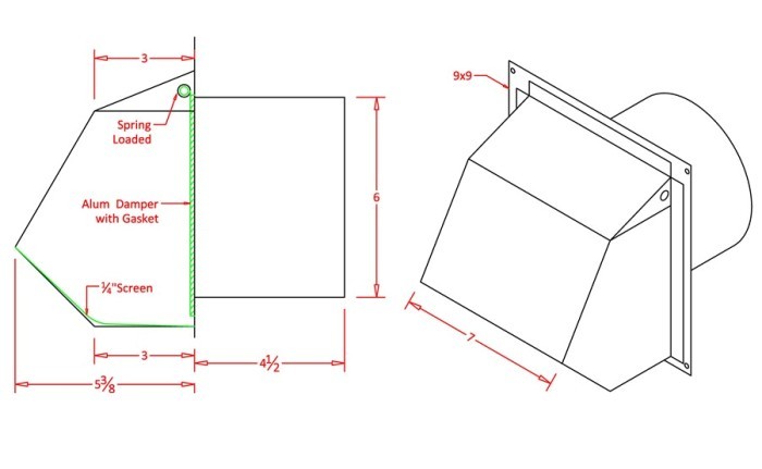 This vent is equipped with a range of features to enhance functionality and performance. The built-in spring-loaded damper allows for easy airflow regulation, while the gasket ensures a tight seal, minimizing air leakage and maximizing energy efficiency. Additionally, the removable ¼ inch metal screen prevents insects and birds from accessing the hood, ensuring a clean and pest-free environment. Plus, the built-in backdraft damper provides added protection against drafts and outside air infiltration.
