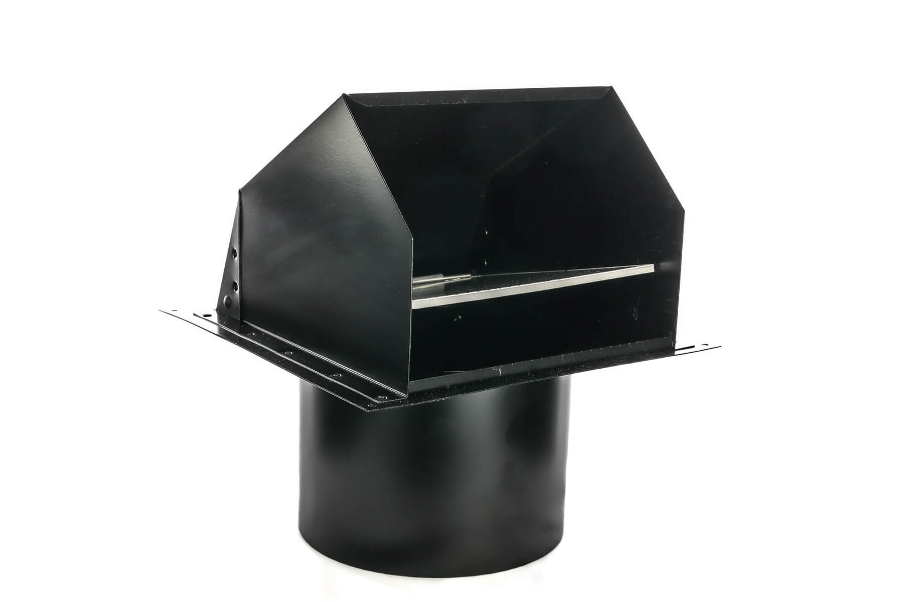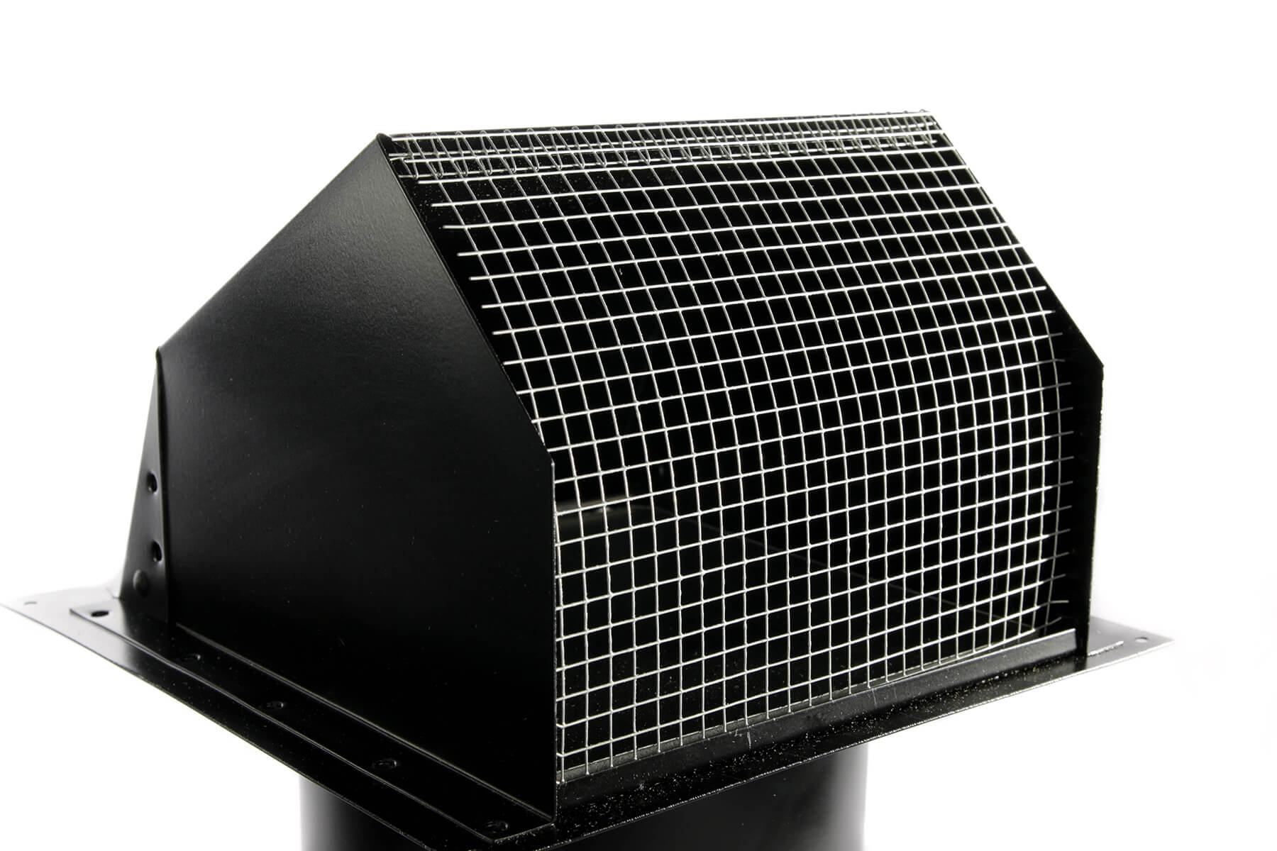 This vent is our ultimate solution for efficient air exhaust applications. Designed for optimal airflow with less restriction, this vent features a big mouth hood that ensures maximum ventilation performance. Constructed from heavy-duty 24 gauge G90 galvanized steel and finished with a sleek black powder coat, this vent not only offers durability but also adds a touch of modern style to any exterior.