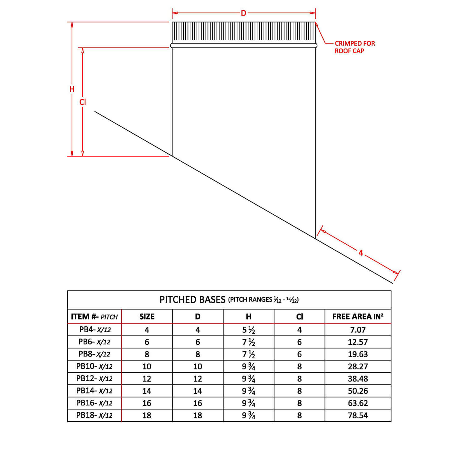 Category: Roof Vent – Subcategory: Roof Vent Base – Type: Pitched Base Material: Galvanized Steel – Finish: Mill – Thickness: 28 Gauge Shape: Round – Dimensions: 4″, 6″, 8″, 10″, 12″, 14”, 16″, 18″ Diameter 2/12, 3/12, 4/12, 5/12, 6/12, 7/12, 8/12, 8/12, 9/12, 10/12, 11/12, 12/12 Pitch – Sku: PB