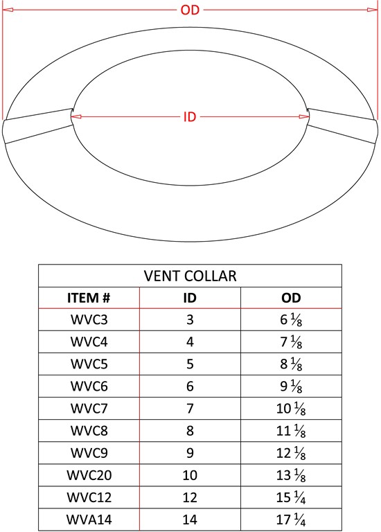 This product is available for pipe sizes from 3 inch - 12 inch. The FAMCO WVC wall vent collar - galvanized is manufactured by FAMCO in the United States and comes with a 1-year warranty against product defects and workmanship. If you have any questions about this product, please refer to the FAQs above or feel free to contact us.